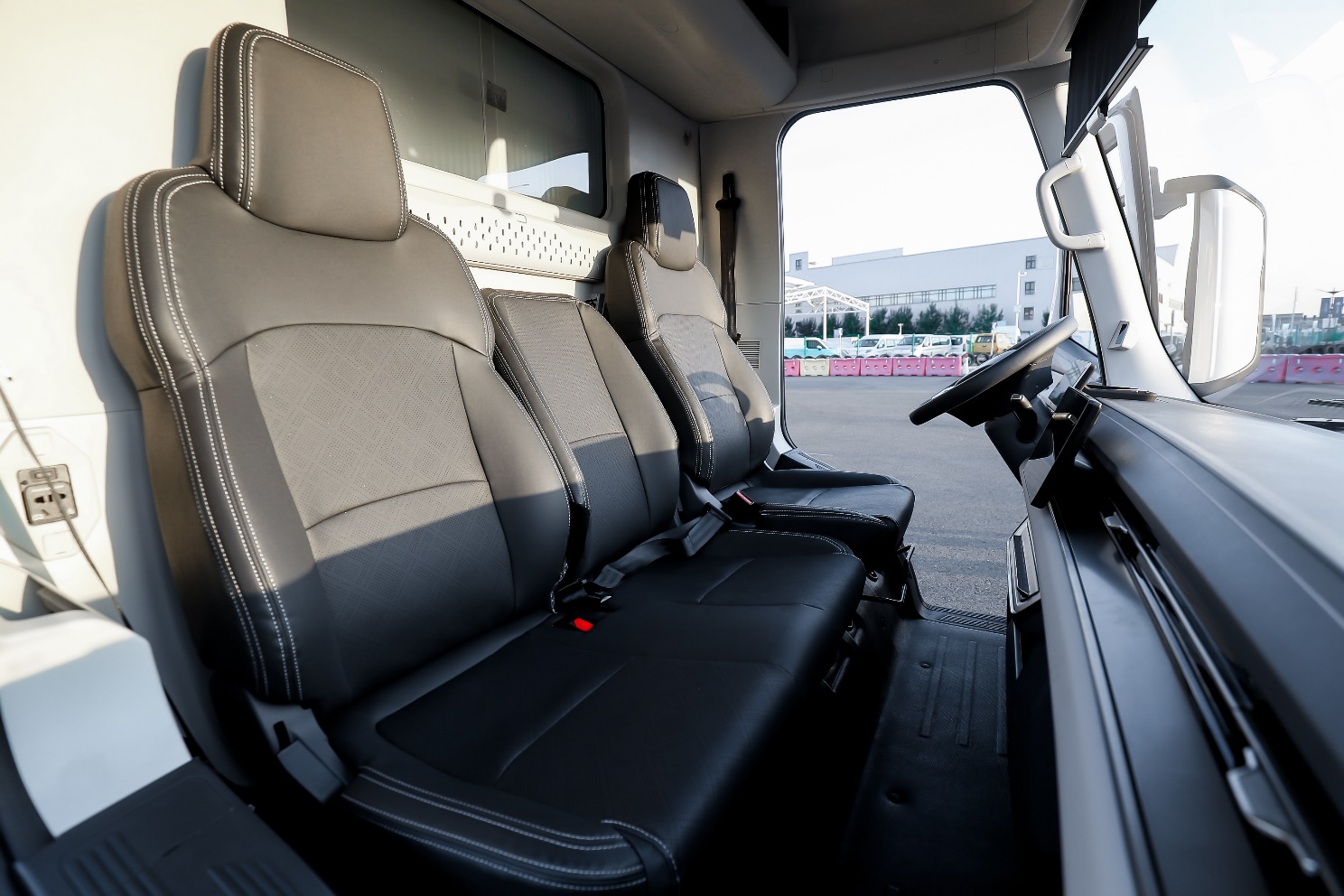 如果說三電系統(tǒng)決定了下限,那座艙配置可能決定價(jià)值上限。歐馬可Z將MPV體驗(yàn)搬進(jìn)了駕駛室,讓枯燥貨運(yùn)變成一種享受。全球首創(chuàng)470mm的一級踏步設(shè)計(jì)的背后是對底盤架構(gòu)的重新布局,是對卡友群體生存現(xiàn)狀的深刻洞察;純平地板、2米2站立高度、49°方向盤傾角、電子手剎、懷擋設(shè)計(jì)等MPV級座艙體驗(yàn),這些以往只在乘用車上出現(xiàn)的配置成為了輕卡新配置,是企業(yè)人文關(guān)懷的進(jìn)一步體現(xiàn)。